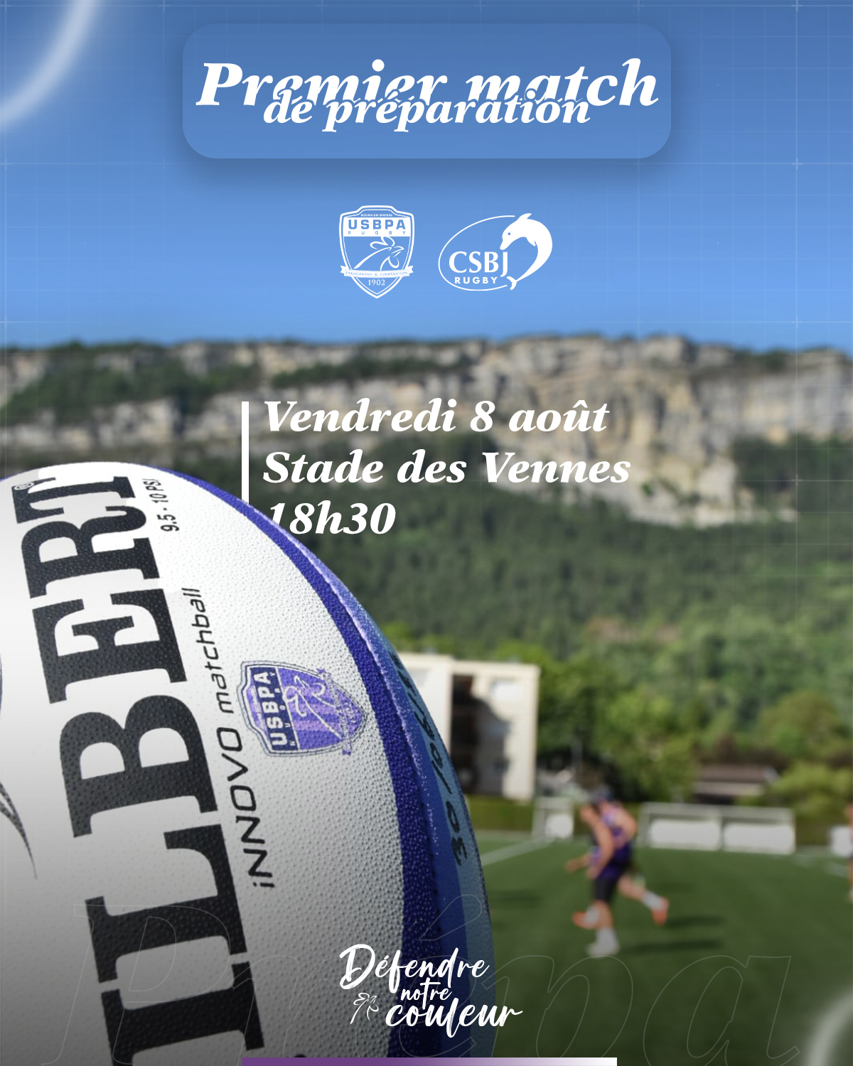 Le premier match de préparation approche ! L’USBPA Rugby reçoit le CSBJ Rugby sur la pelouse de notre club partenaire du SAB Rugby (Stade des Vennes – Robert Ardito). On vous donne rendez-vous ce vendredi 8 août à 18h30. Pour les abonnés 25-26, récupérez votre place offerte en boutique cette semaine ! Le tarif sur place le jour du match : 5€ (tarif unique, pas de remise de places abonnés le jour du match au guichet du SAB).